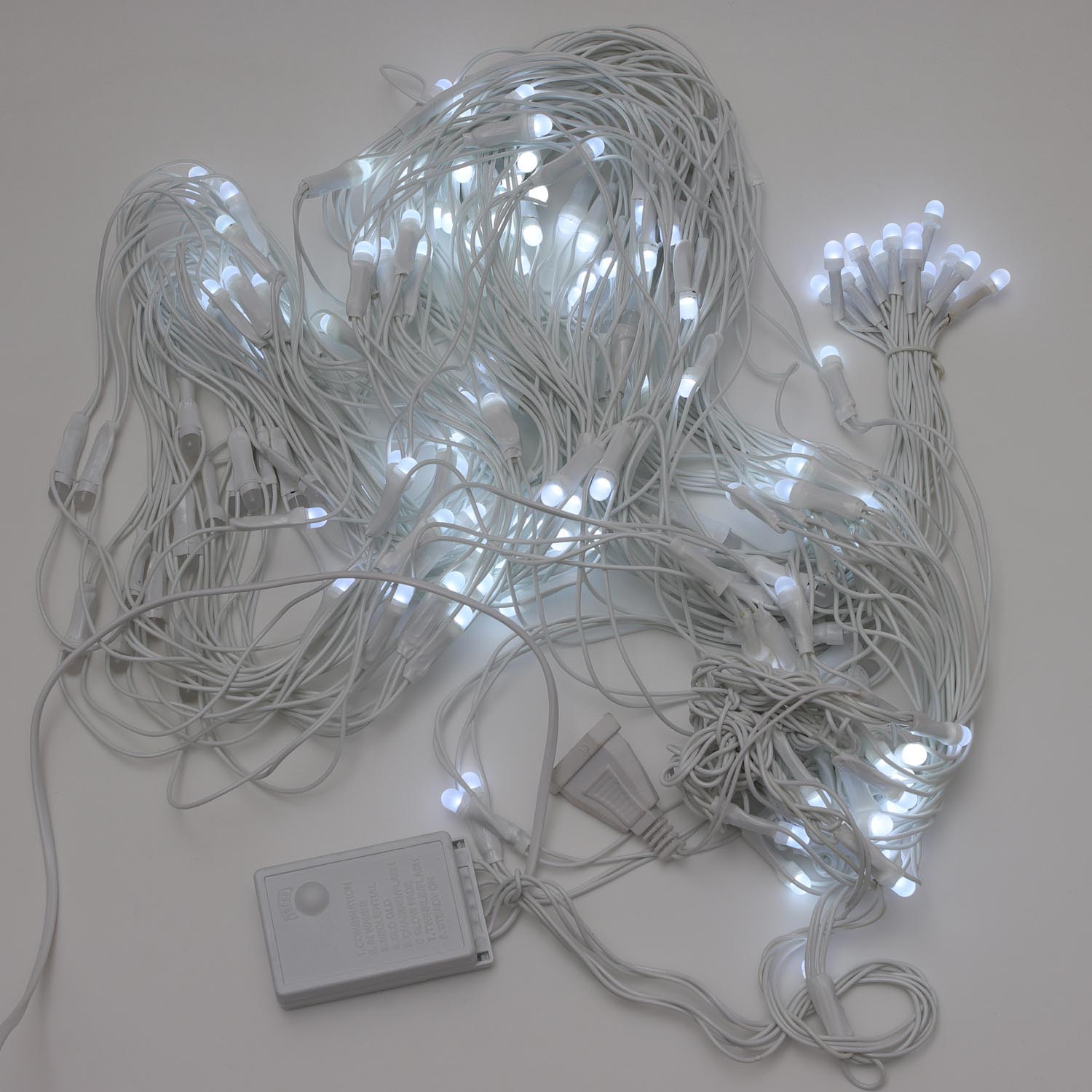 Сетка светодиодная крупный диод 192 LED 2*2 м белый провод белая