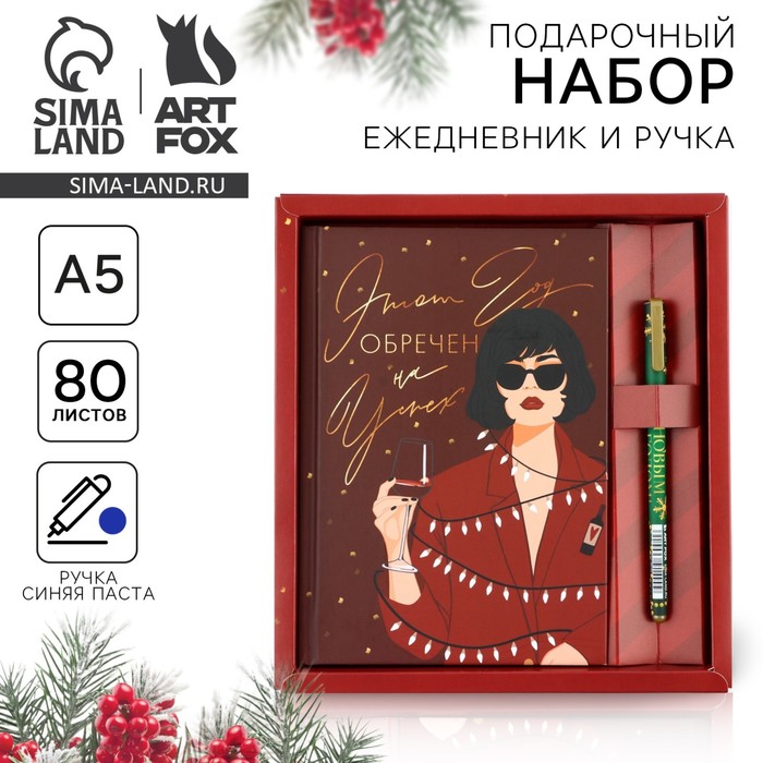 Подарочный набор новогодний, ежедневник А5, 80 листов, ручка синяя паста «Этот год обречен на успех»