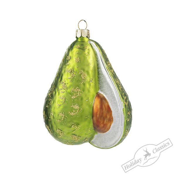 Украшение на ёлку из стекла Авокадо - изделие из коллекции новогодних игрушек и аксессуаров Holiday Classics. Легенда гласит, что первый авокадо был съеден принцессой индейского племени майя в Мексике около 300 года до н. э. Авокадо также известно, как аллигаторова груша, так как плод имеет форму груши, а его плотная кожа напоминает кожу крокодила. Этот красивый стеклянный орнамент в виде авокадо был со вкусом разработан для вас, чтобы дарить радость и свежесть лета в новогодние праздники. Стеклянные Фигурные Украшения
