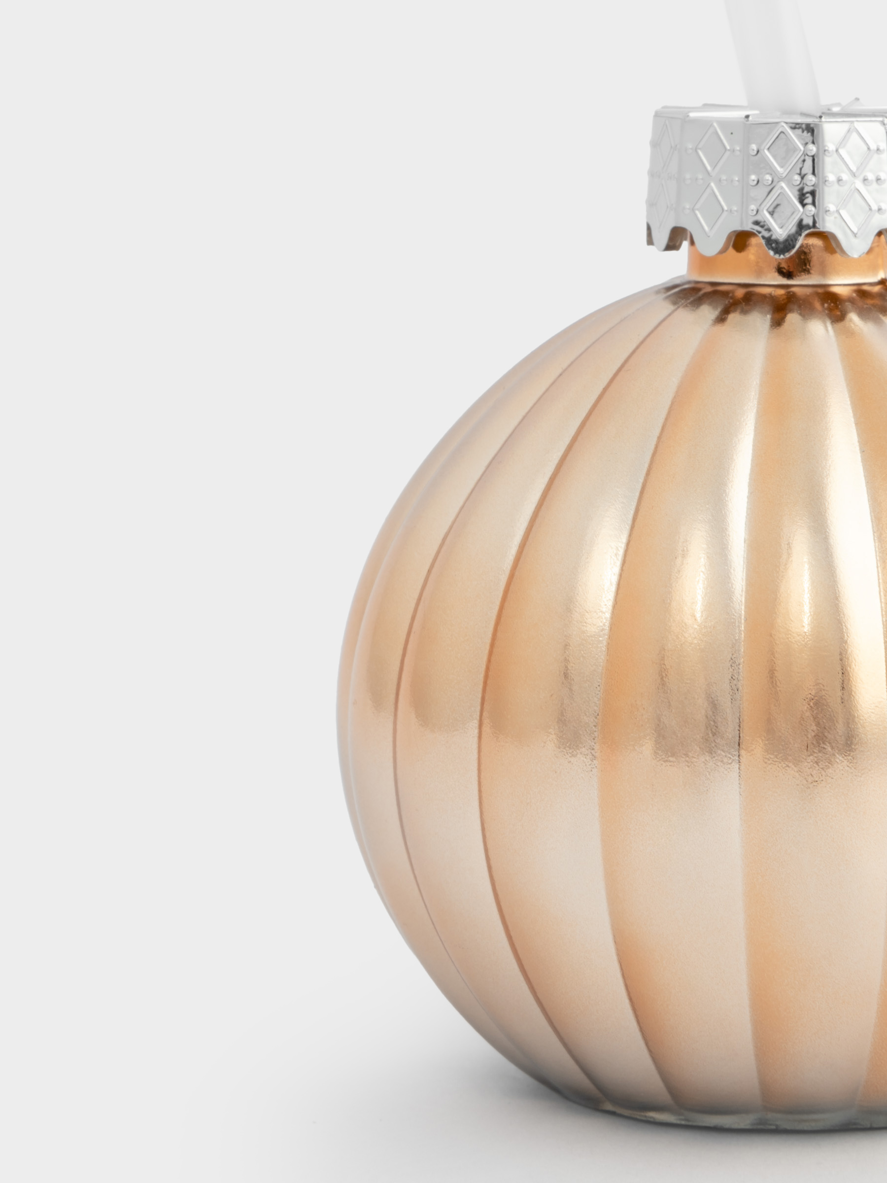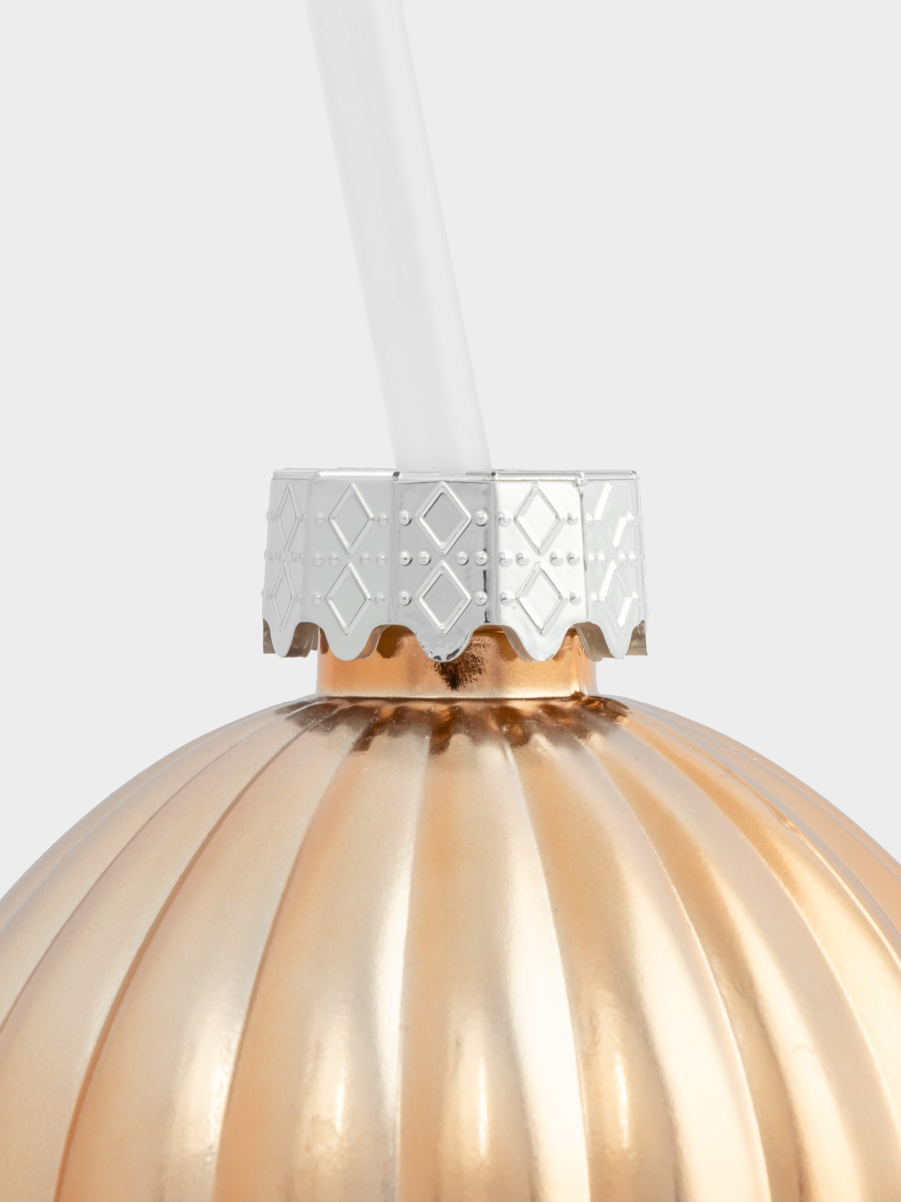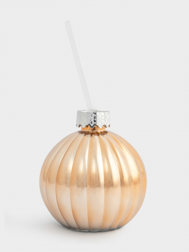 Банка для напитков, 380 мл, с крышкой и трубочкой, стекло, золотистая, Шар, New year