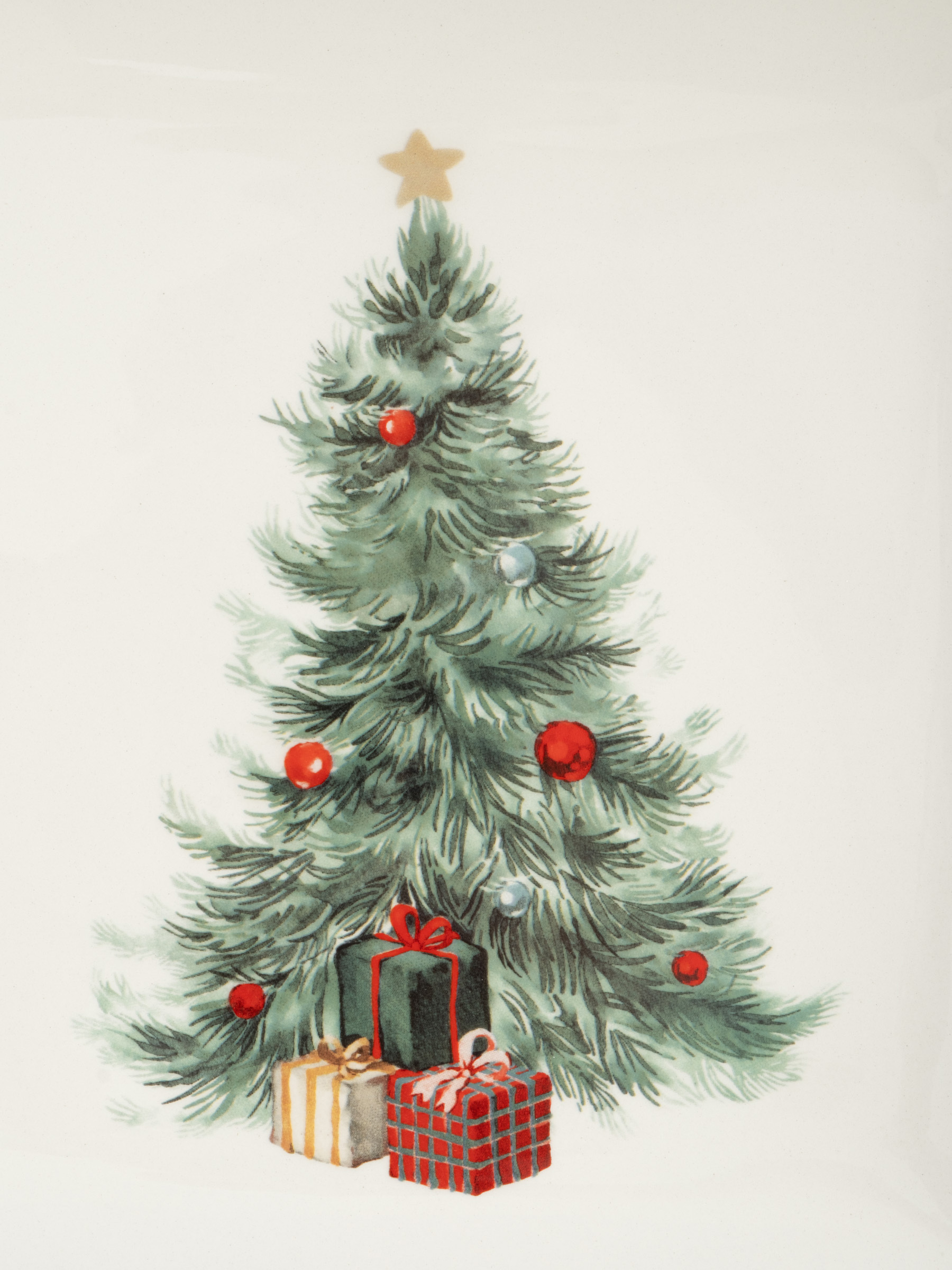 Блюдо, 22х22 см, керамика D, квадратное, зеленое, Елка с подарками, Festival