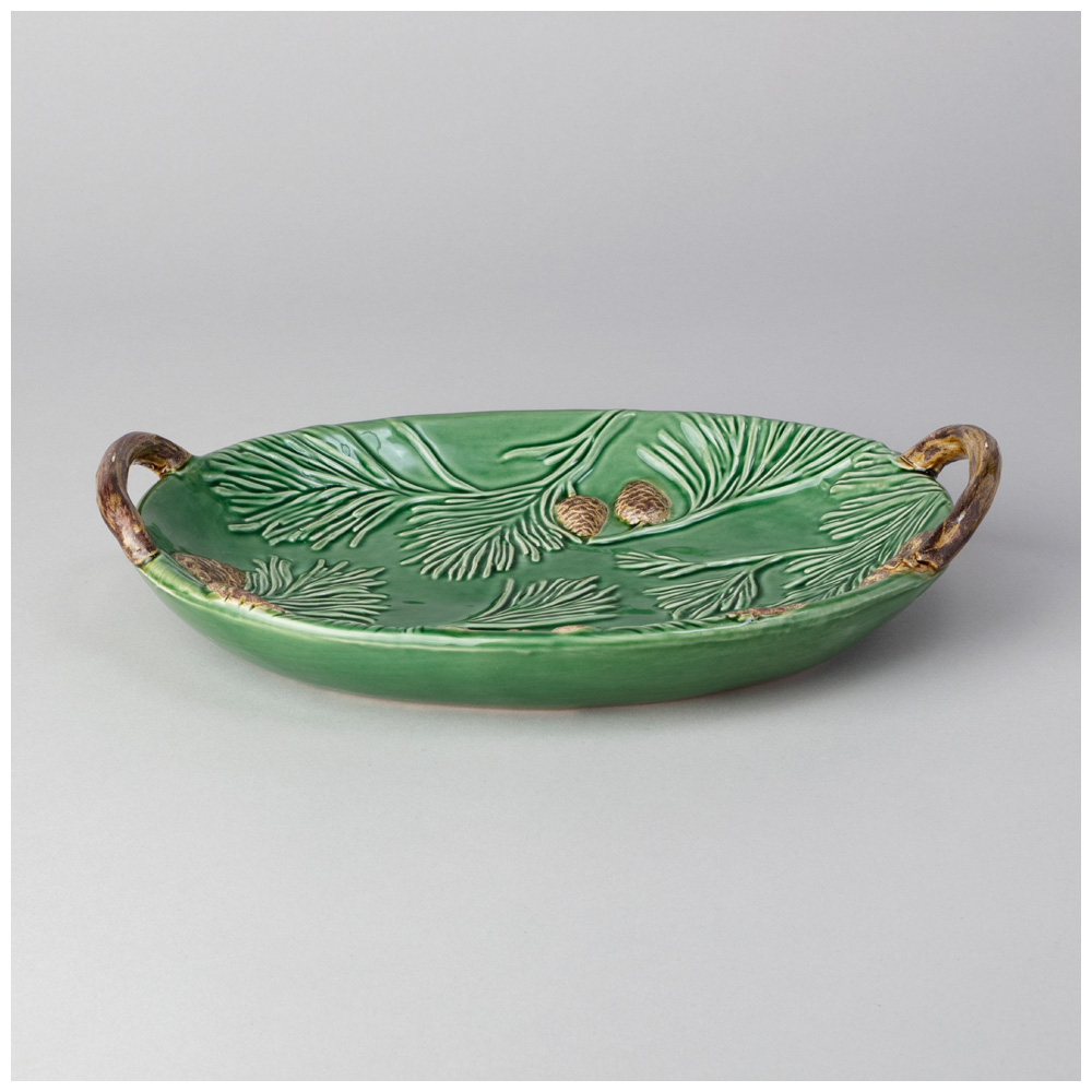 Наша посуда отличается насыщенными зелеными оттенками, которые ассоциируются с зимним лесом и свежестью природы. Объемные шишки и сосновые ветки, изящно оформленные на поверхности изделий, создают поистине волшебную атмосферу, способную перенести вас в сказочный лес. Эти элементы дизайна представлены с особым вниманием к деталям, что подчеркивает уникальность каждого изделия.