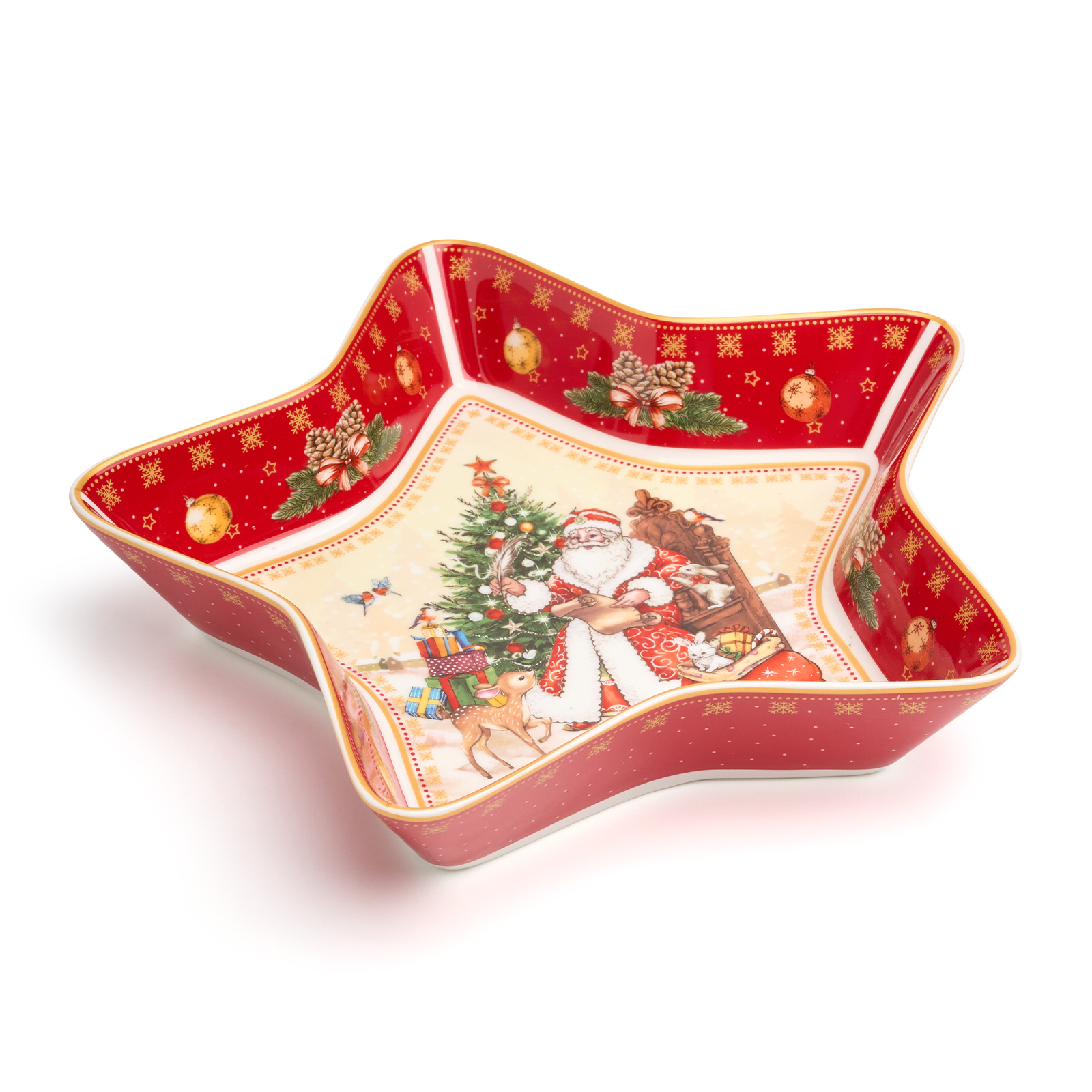 БЛЮДО-ЗВЕЗДА LEFARD "ДЕД МОРОЗ" 28*28*5 СМ КРАСНОЕ (КОР=8ШТ.)