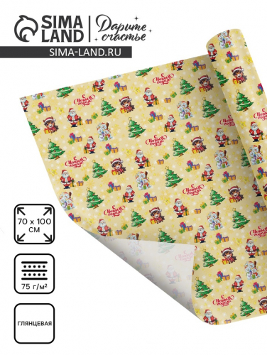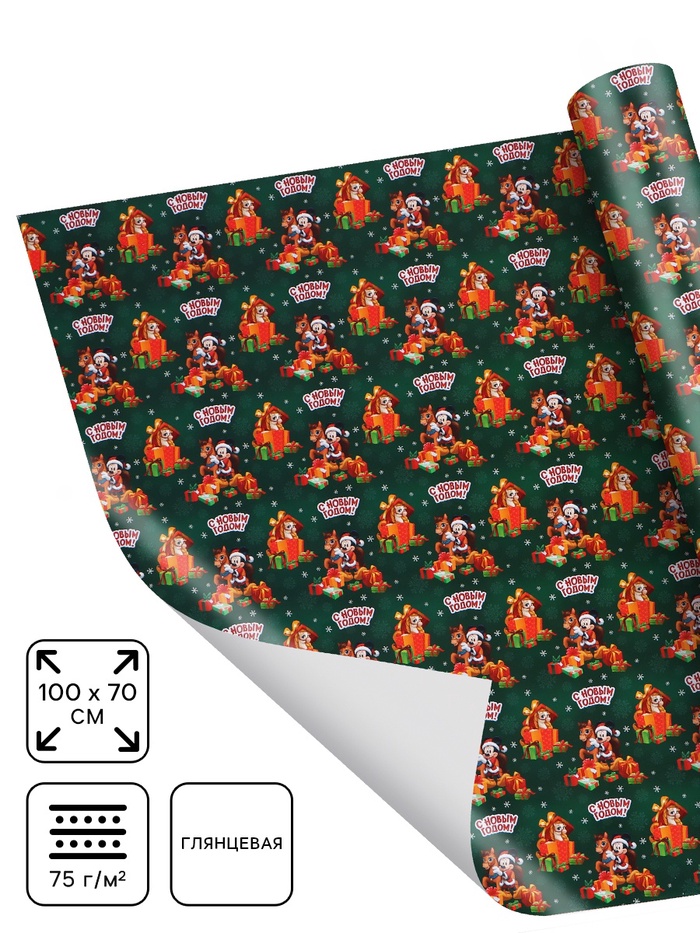 Бумага упаковочная глянцевая «Новый год 2026», лошадь, 70×100 см