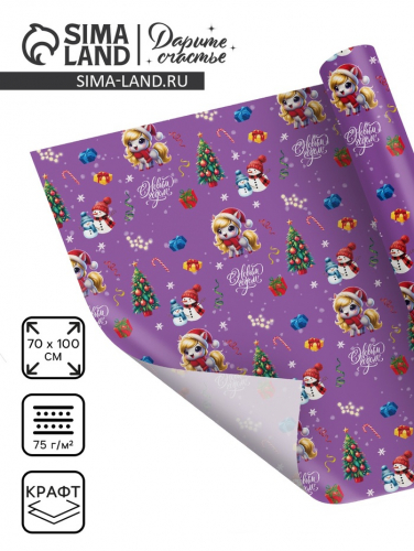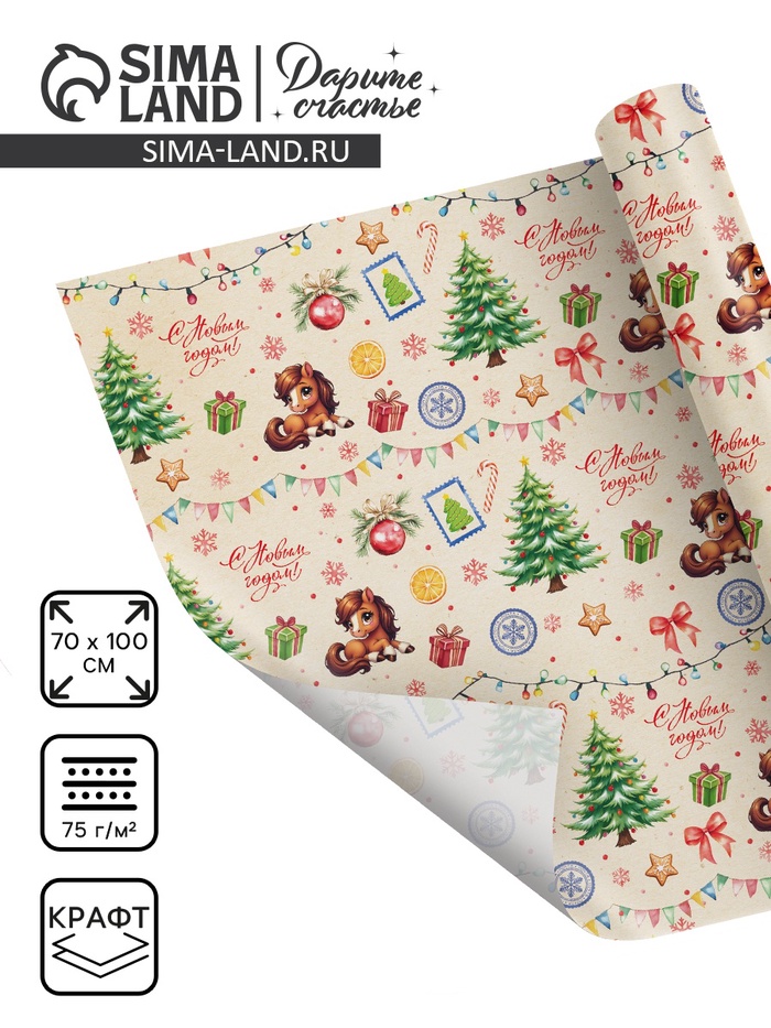 Бумага упаковочная крафтовая «Новый год 2026», лошадь, 1 лист, 70×100 см