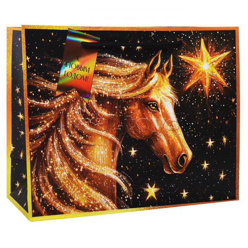 Бумажный пакет для сувенирной продукции с ламинацией, с шириной основания 17,8 cм.