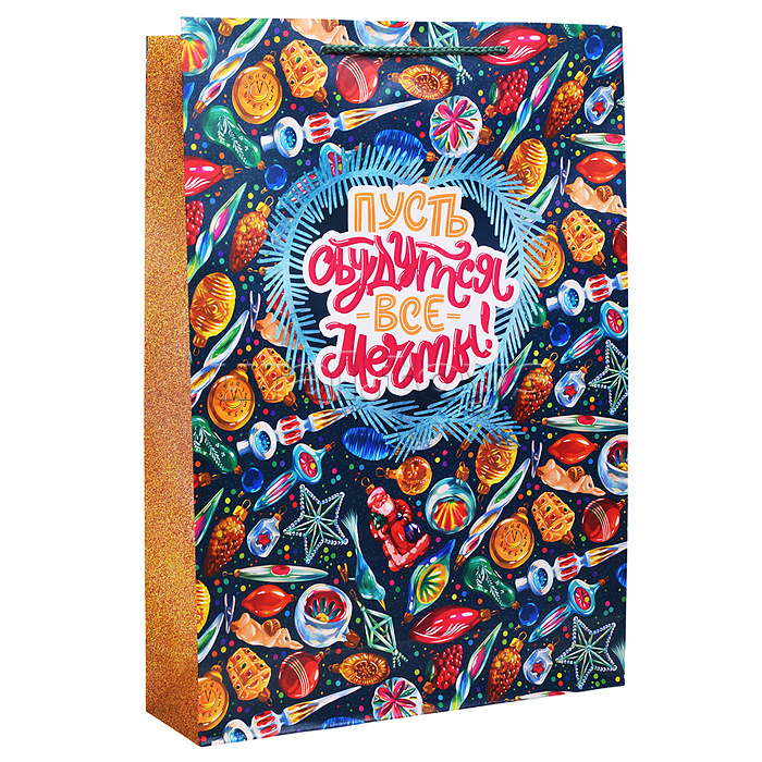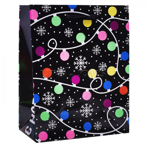 Бумажный пакет для сувенирной продукции с ламинацией, с шириной основания 33 cм.