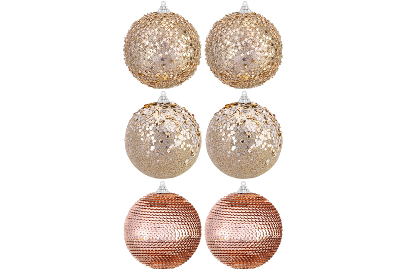 БЫЛО 1270 руб! Набор 6 новогодних шаров 9,5*9,5 см "Шампань"