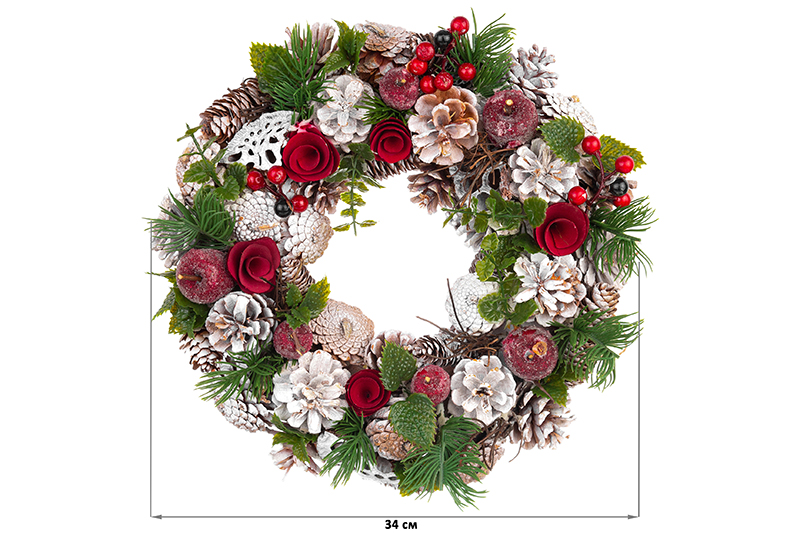 БЫЛО 1323 руб! Новогоднее украшение венок 34*34*8 см "Снежная фантазия" круг