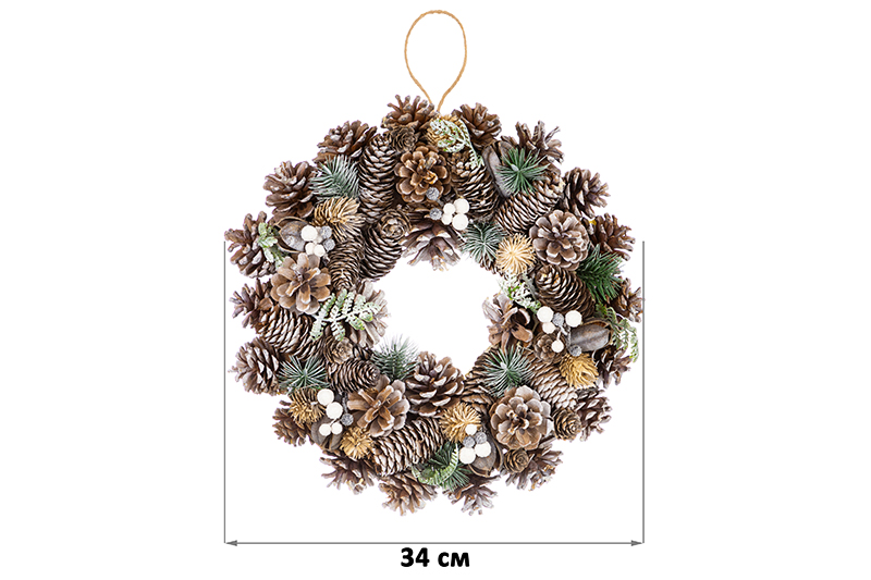 БЫЛО 1323 руб! Новогоднее украшение венок 34*34*8 см "Снежный лес" круг