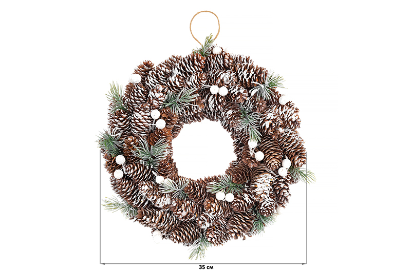 БЫЛО 1323 руб! Новогоднее украшение венок 35*35*8 см "Снежный лес" круг