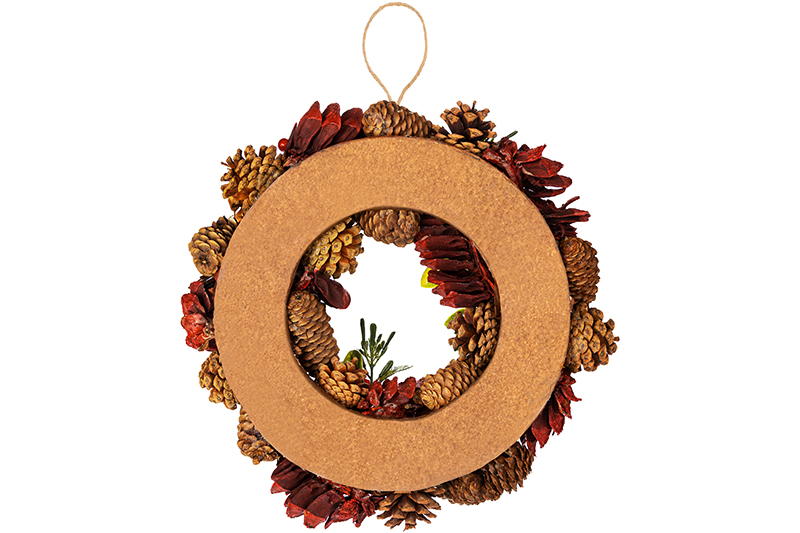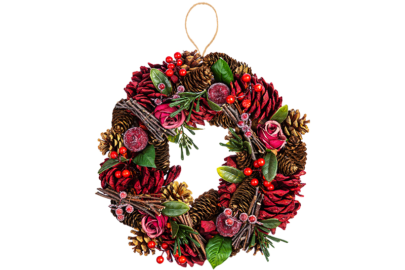 БЫЛО 1371 руб! Новогоднее украшение венок 34*34*8 см "Красный бархат" круг