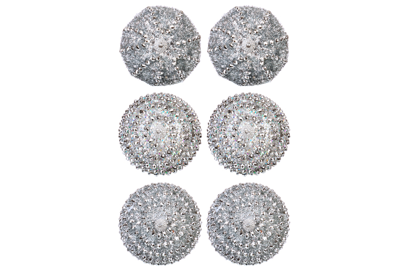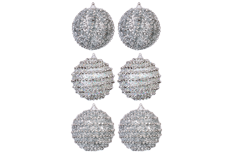 БЫЛО 1703 руб! Набор 6 новогодних шаров 9,5*9,5 см "Серебряный узор"