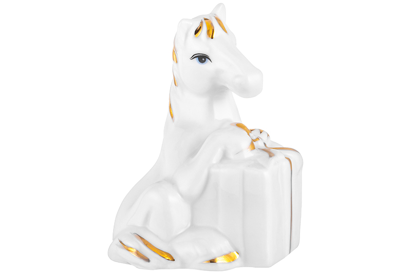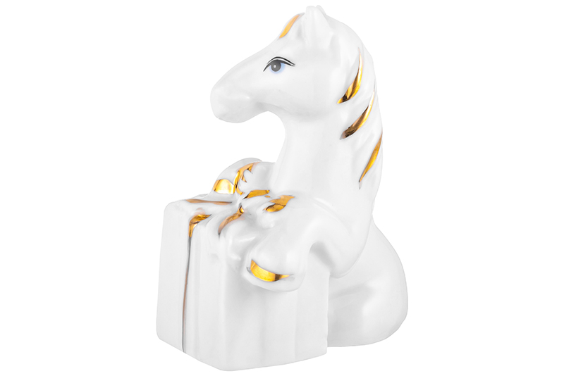 БЫЛО 349 руб! Фигурка декоративная 5,5*4,5*7 см "Лошадь" с подарком белая с золотом, фарфор