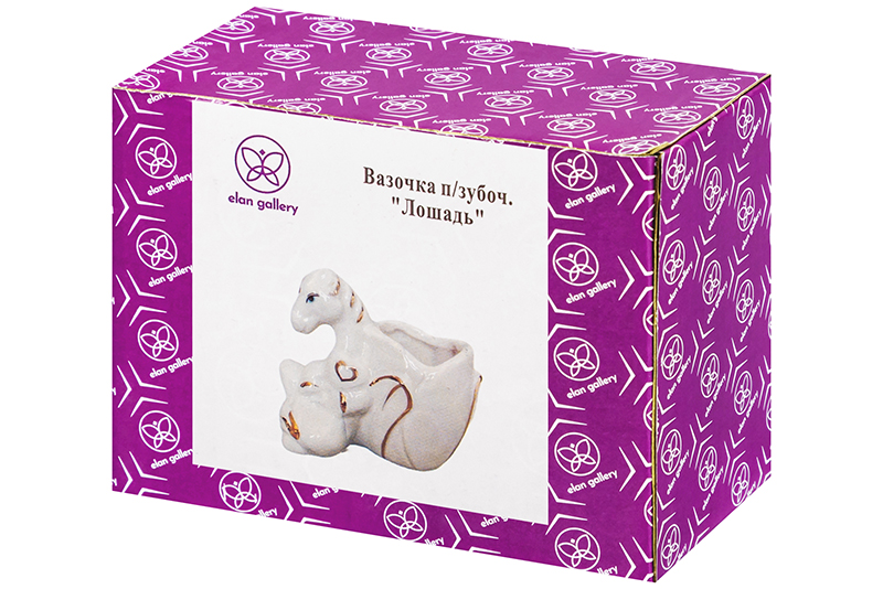 Вазочка под зубочистки «Лошадь» от Elan Gallery предназначена для организации хранения вещей на вашей кухне. Зубочистки не входят в комплект! Размер изделия – 7,5х4,5х6,5 см. Выполнено из высококачественного белого фарфора. Он не впитывает посторонние цвета и легко отмывается, благодаря чему надолго сохранит свою белизну. Представляет собой фигурку маленькой лошади с сердечком, сидящей спиной к цветочному бутону. Изделие украшено золотистыми элементами. Держатель преобразит вашу сервировку и поможет эстетично подавать к столу зубочистки. Лошадь – символ 2026 года! Её образ отражает энергию, свободу и неукротимый дух, вдохновляя на преодоление любых преград. Мы создали коллекцию новогодних и рождественских товаров для сервировки и декора, которые наполнят пространство атмосферой уюта. Изделия помогут оформить интерьер праздничными композициями и добавят нотку зимнего волшебства. Благодаря необычному дизайну стильная настольная статуэтка выступит и самостоятельным элементом декора – она найдёт место в любой части вашего дома. Это эффектный подарок на любой праздник, в том числе на Новый год и Рождество. Не рекомендуется применять абразивные моющие средства. Не подходит для использования в посудомоечной машине и микроволновой печи. Поставляется в яркой картонной коробке – благодаря ей вам не потребуется дополнительная подарочная упаковка. В ассортименте бренда Элан Галерея вы найдёте множество полезных товаров для дома, которые станут уникальным дополнением любого интерьера!