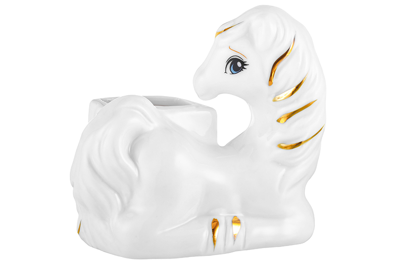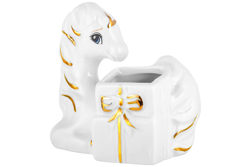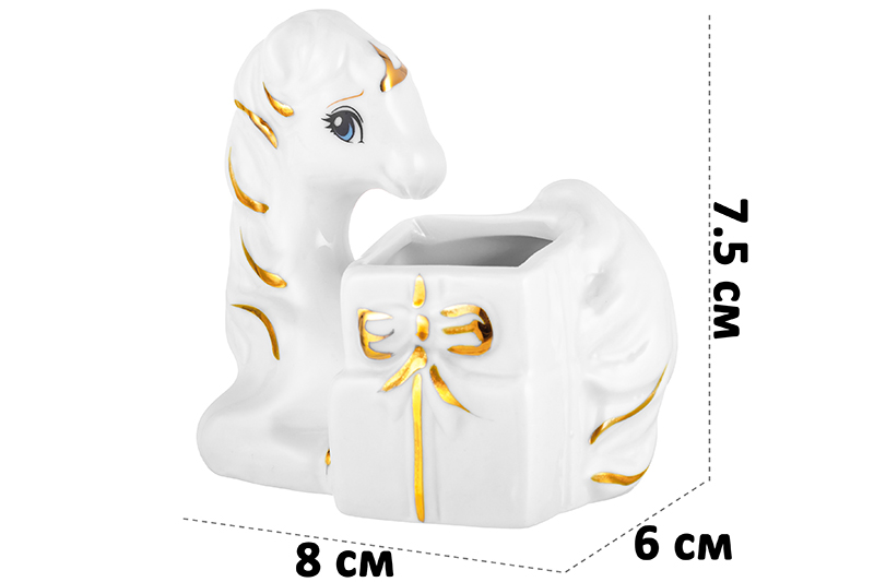 БЫЛО 349 руб! Вазочка для зубочисток 8*6*7,5 см "Лошадь" белая с золотом, фарфор