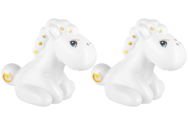 БЫЛО 582 руб! Набор для специй 2 предмета 8,5х5х7,5 см "Лошадки" белая с золотом, фарфор