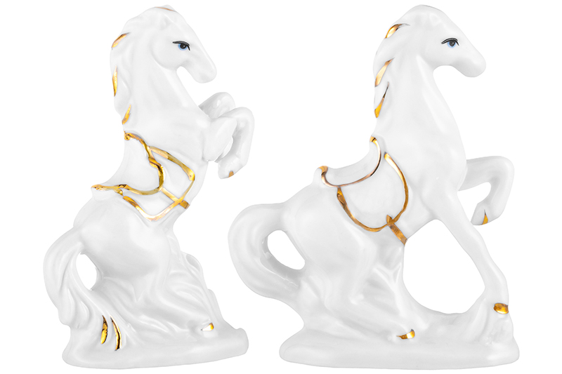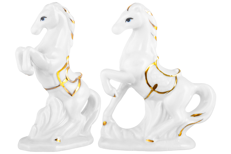 БЫЛО 601 руб! Набор фигурки декоративные 2 пр. 5,5*3*8,5 см, 6,5*2,5*8,5 см "Лошади" белая с золотом, фарфор