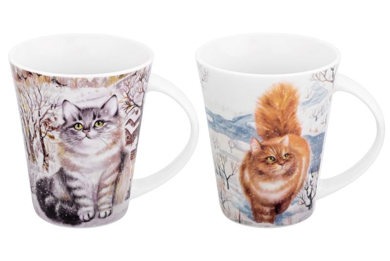 БЫЛО 656 руб! Набор 2 кружек 350 мл 12*9*11 см "Коты" NEW BONE CHINA