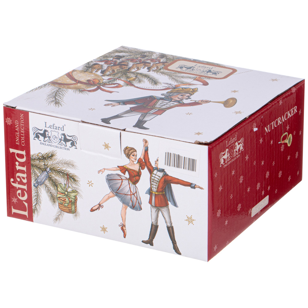 ТМ LEFARD эксклюзивная коллекция «Nutcracker» - Щелкунчик создана по мотивам одноименной истории, с которой знакомы все дети и взрослые. Волшебная история о новогоднем чуде идеально подходит для создания праздничного настроения. Широкий ассортимент тарелок, салатников, кружек, чайных пар поможет сервировать праздничный стол и создать сказочную атмосферу. Все изделия выполнены из качественного тонкого фарфора. Прямые современные формы, удобные объемы. Стильная, подарочная упаковка. Дарите сказку друзьям и близким людям! Не рекомендуется использовать в микроволновой печи, мыть в посудомоечной машине.