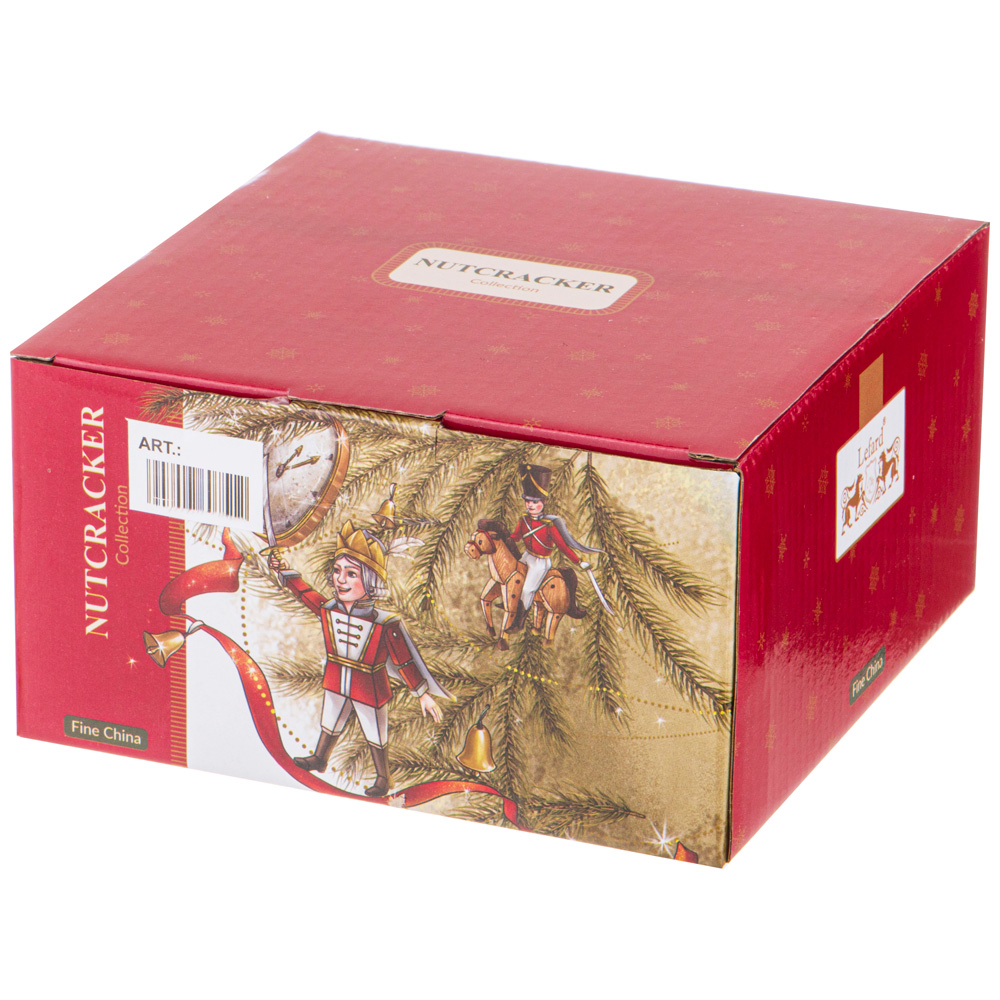 ТМ LEFARD эксклюзивная коллекция «Nutcracker» - Щелкунчик создана по мотивам одноименной истории, с которой знакомы все дети и взрослые. Волшебная история о новогоднем чуде идеально подходит для создания праздничного настроения. Широкий ассортимент тарелок, салатников, кружек, чайных пар поможет сервировать праздничный стол и создать сказочную атмосферу. Все изделия выполнены из качественного тонкого фарфора. Прямые современные формы, удобные объемы. Стильная, подарочная упаковка. Дарите сказку друзьям и близким людям! Не рекомендуется использовать в микроволновой печи, мыть в посудомоечной машине.