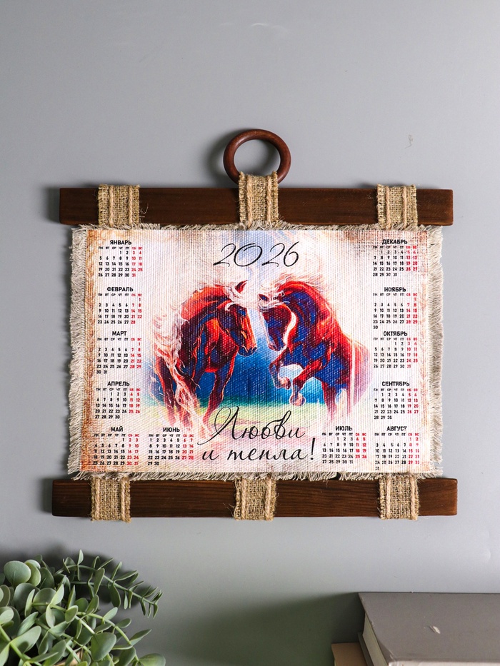 Декор настенный, панно «Календарь подвесной 2026. Любви и тепла в год лошади», 23.5×52 см