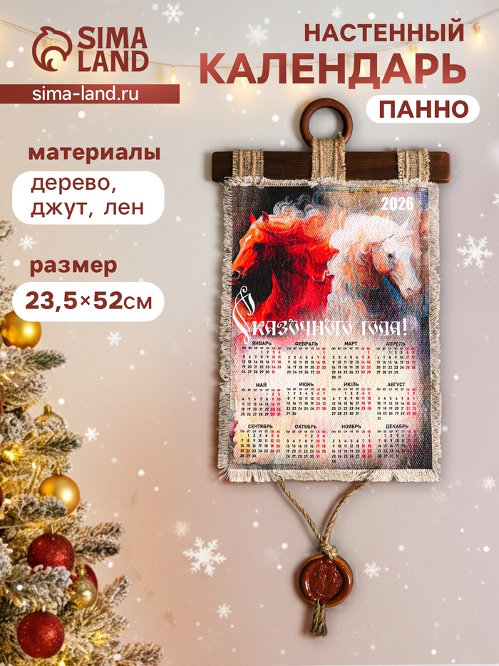 Декор настенный, панно «Календарь подвесной 2026. Сказочного года Лошади», 23.5×52 см