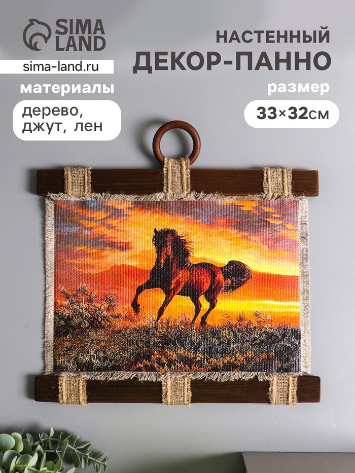 Добавьте в интерьер энергию и свободу! Настенное панно «Сила и грация коня» — это рукотворное изделие, которое сочетает в себе природные материалы и символику. Композиция передает мощь и изящность лошади, создавая в помещении особую атмосферу.
