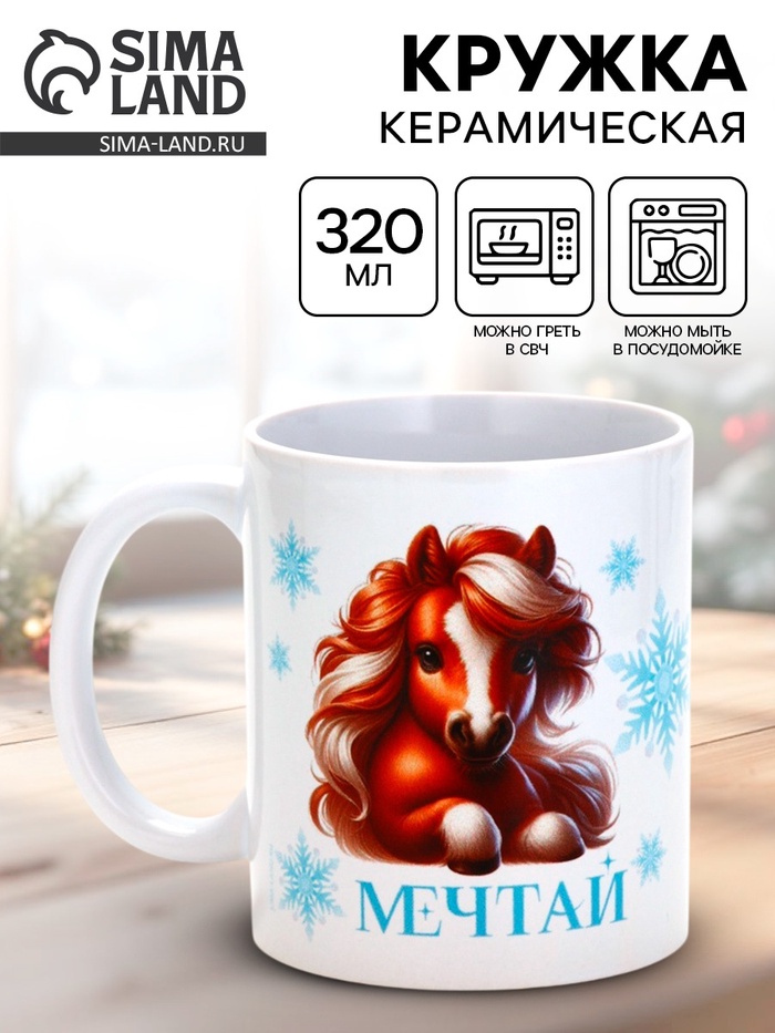 Кружка керамическая новогодняя «Мечтай», лошадь, 320 мл