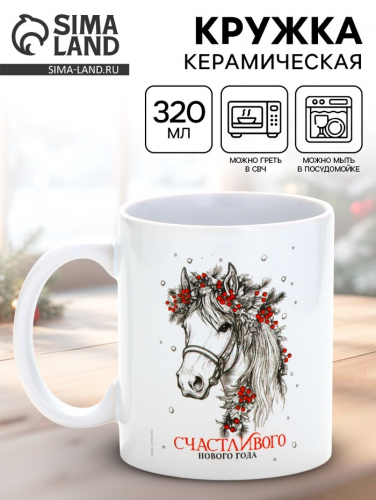 Кружка новогодняя керамическая «Новогодних чудес», лошадь, 320 мл