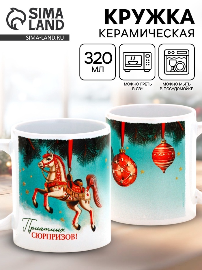 Кружка новогодняя керамическая «Приятных сюрпризов!», лошадь, 320 мл