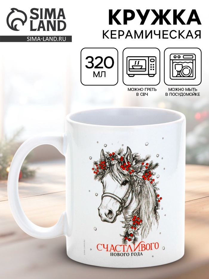 Кружка новогодняя керамическая «Счастливого Нового года», лошадь, 320 мл