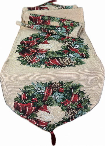 Дорожка гобеленовая на стол НОВОГОДНИЙ ВЕНОК р-р 180х35