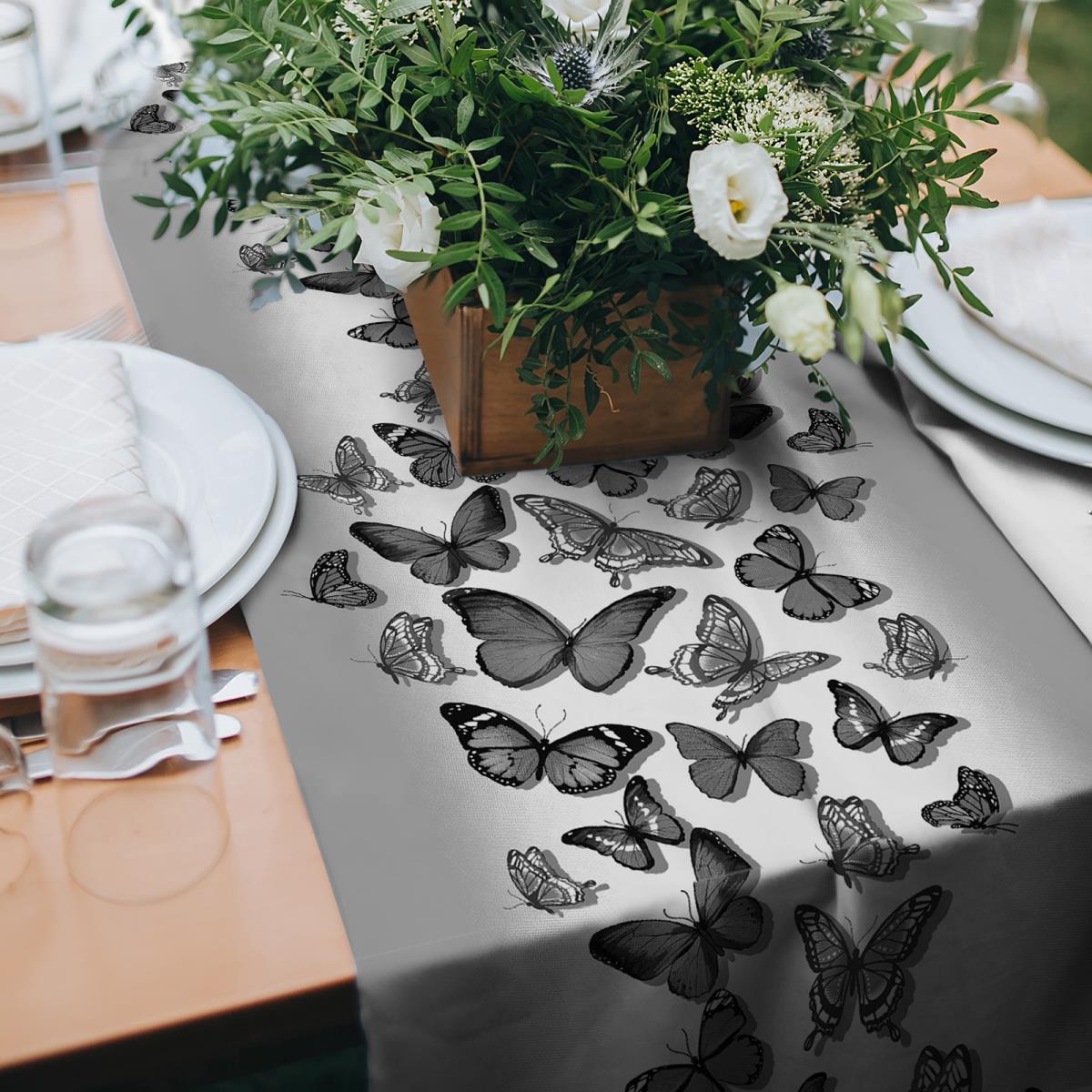 Дорожка тканевая на стол 29031 - 5 ПОЛЕТ МОТЫЛЬКА СЕРЫЙ р-р 50х150