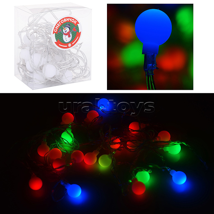 Электрогирлянда "Бусины", 4 м, 20 ламп, цветная