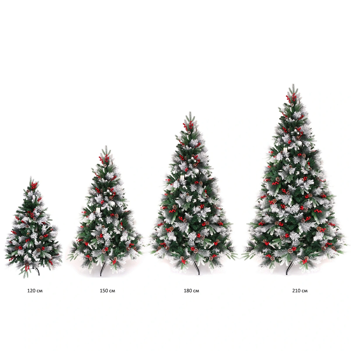Елка "Грация" 150 см, ПВХ, леска, резина с белым напылением (шишки и ягоды), 541 ветка