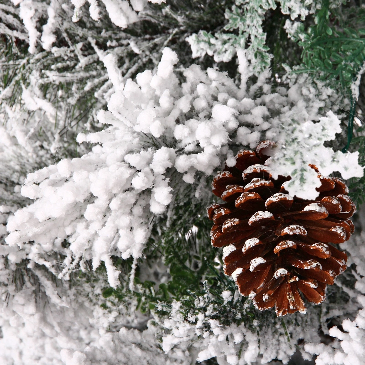 Ёлка "Кружевница" 210 см, ПВХ+Леска с шишками белая снежная посыпка (595 ветки)