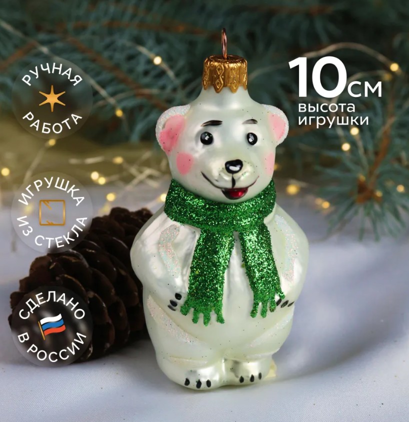 Ёлочное украшение "Мишутка в шарфе" зеленый, в подарочной упаковке h-9 см