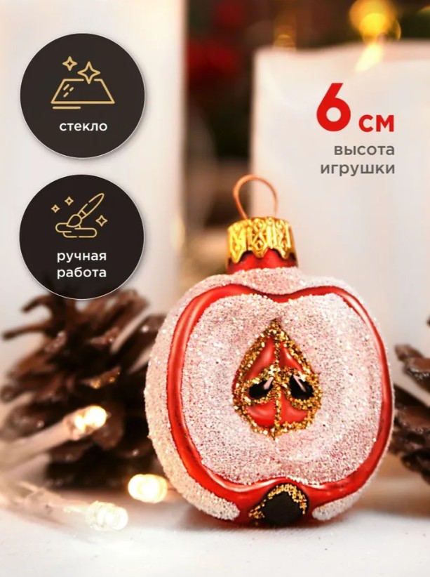 Ёлочное украшение "Половинка яблока", в подарочной упаковке, h-6см