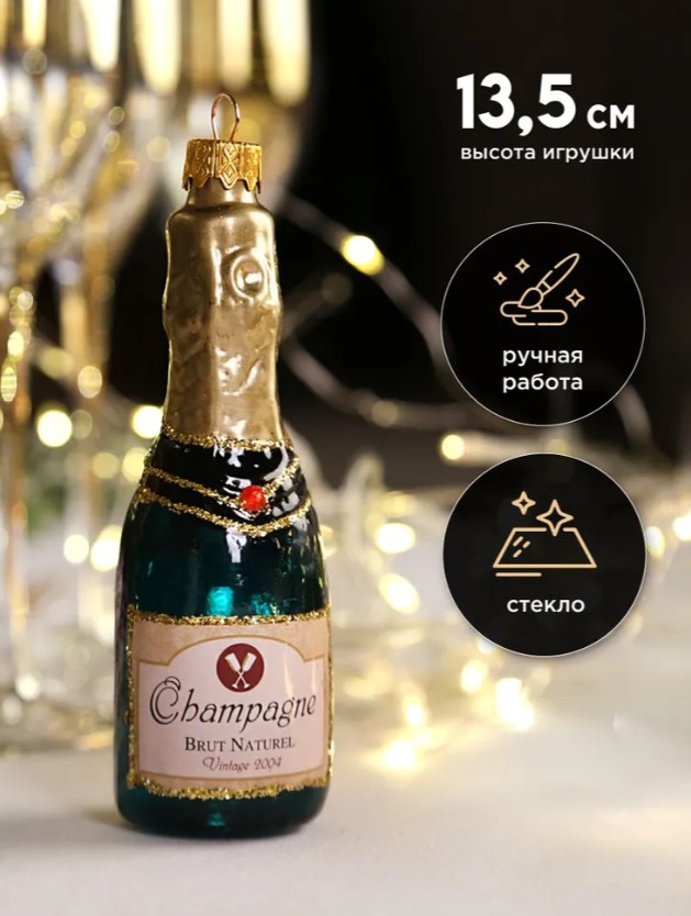 Ёлочное украшение "Шампанское 2", в подарочной упаковке, h- 13,5 см