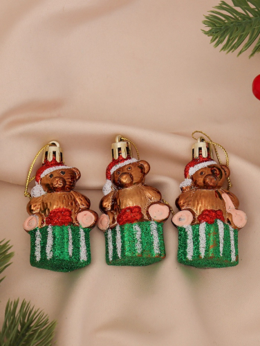 Ёлочные игрушки 3 шт. «Зимнее волшебство. Мишка на подарке» пластик, 6×4 см