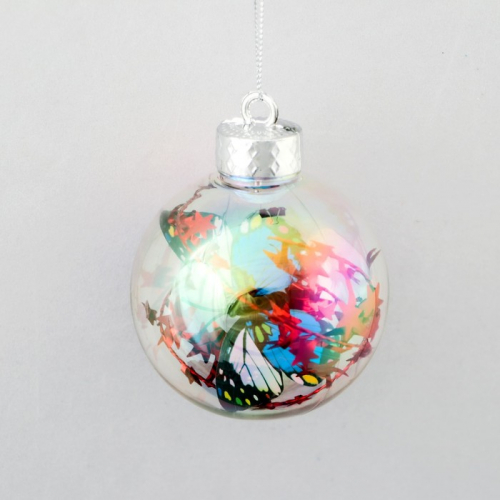 Ёлочные игрушки «Карнавал», шары новогодние, d=8 см, набор 4 шт., звёзды, бабочки