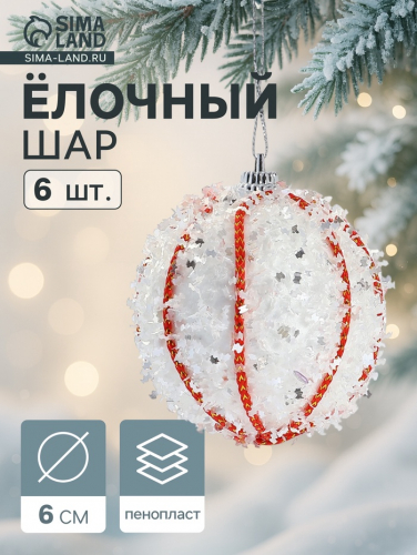 Ёлочные игрушки «Вилей», шары новогодние, d=6 см, 6 шт., белый