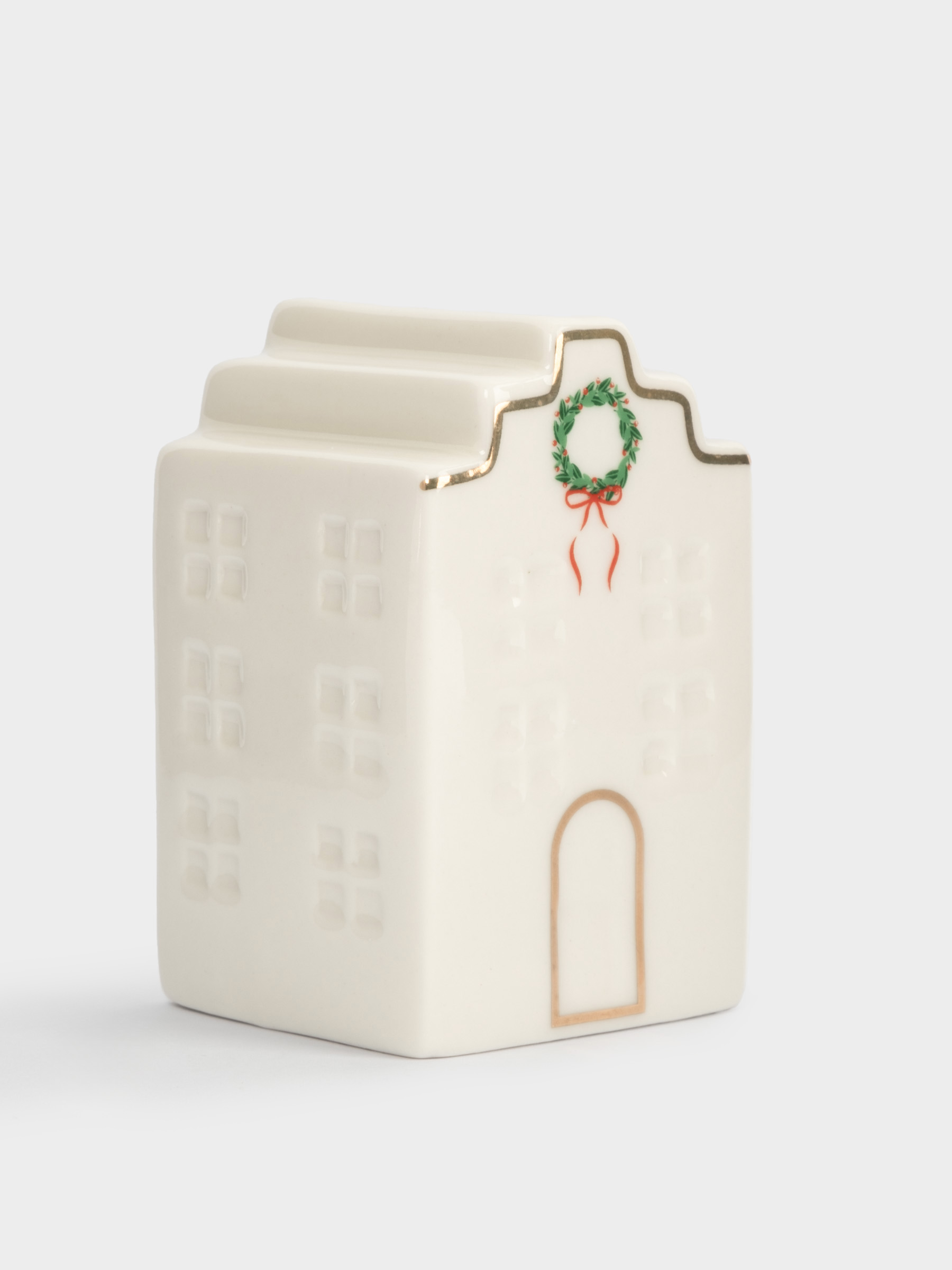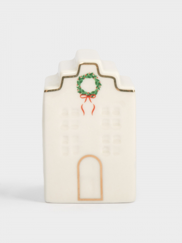 Емкость для соли или перца, 8 см, фарфор P, бело-золотистая, Дом с венком, Townlet