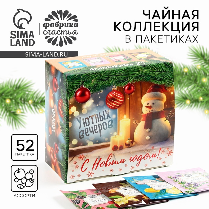 Чай новогодний «Уютных вечеров», ассорти вкусов, 52 пакетика
