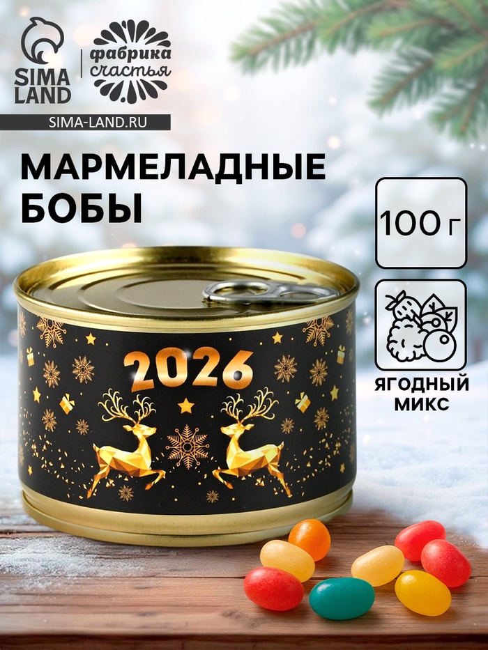 Мармелад бобы «Новый год 2026», в консервной банке, 100 г