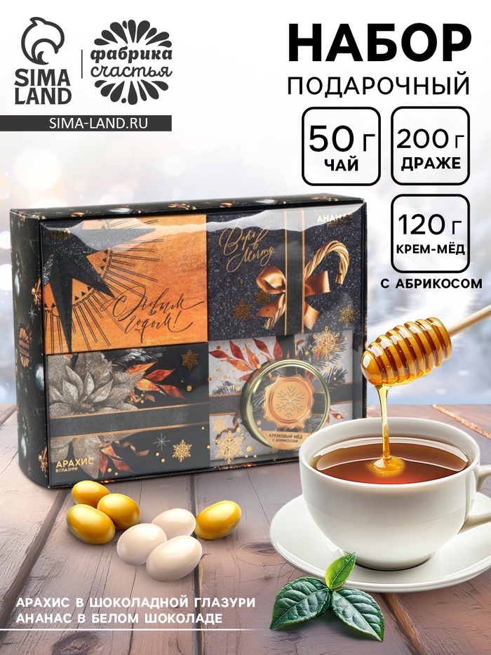 Составляющие набора: Чай, Арахис, Крем-мёд