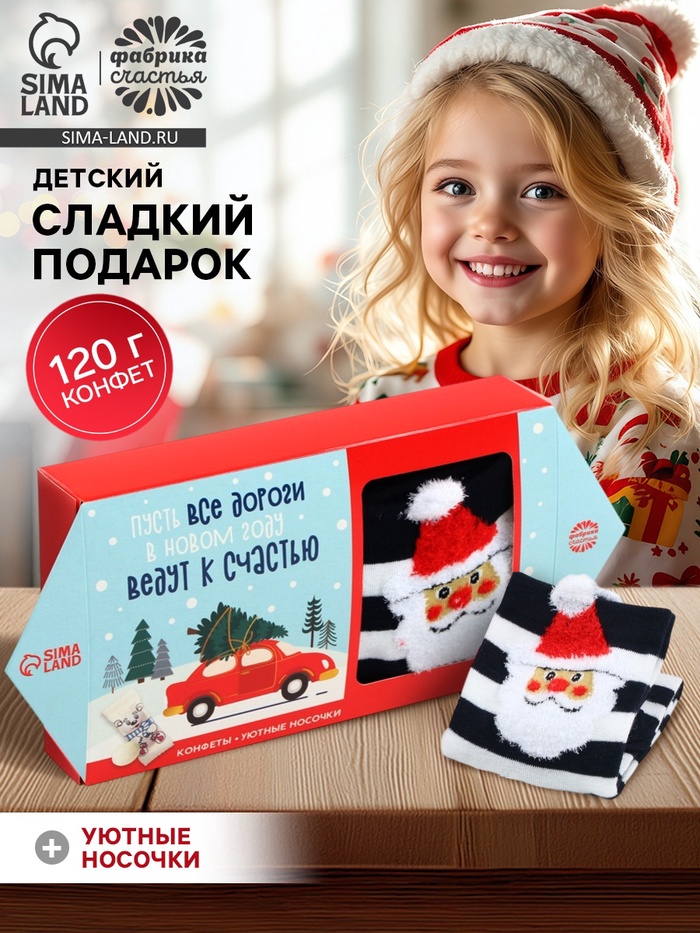 Подарочный набор новогодний «Все дороги в новом году ведут к счастью»: конфеты, носки