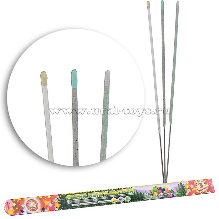Бенгальская свеча 400мм. "Уральские самоцветы" (в уп. 3 шт)