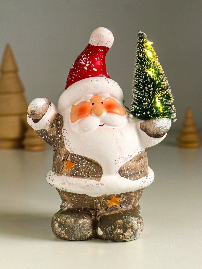 Фигурка светящаяся «Дед Мороз в серебристой шубке с ёлочкой», керамика, 9.5×7.5×14.5 см